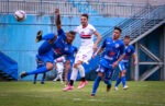 Aos 26 minutos, pela direita Edvan cruza na área, o goleiro Felipe Garcia rebate e na sobra Gabriel Davis, não conseguiu dominar e perdeu a chance de finalizar para dentro da meta adversária.