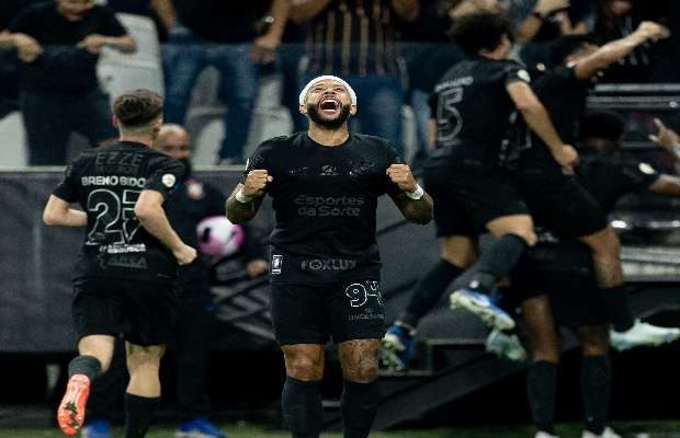 Corinthians: Matheuzinho, aos 5, e Cacá, aos 18 do 1ºT; Memphis, aos 10, Garro, aos 21, e Yuri Alberto, aos 33 do 2ºT