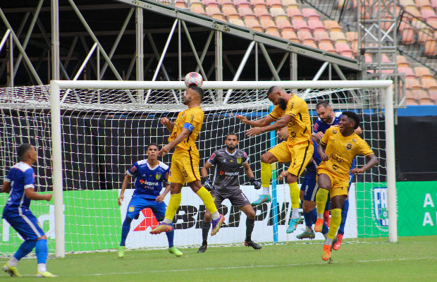 Um minuto depois, nova investida do Naça. Tiro de canto pela esquerda na área, o goleiro do Amazonas dá rebote e na sobra Natan bateu forte, mas por cima da meta.