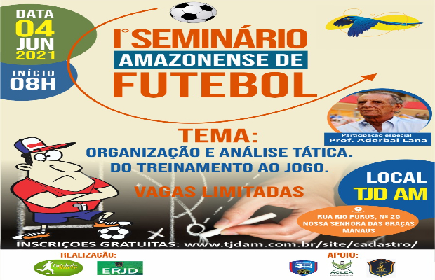 Os resultados do Campeonato Amazonense de 2021 fora de campo com os profissionais que trabalharam a parte técnica, tática, física e outras especificidades serão colocados em discussão, análise e avaliação no 1º Seminário Amazonense de Futebol, com o tema “Organização e análise tática, do treinamento ao jogo”. O evento será realizado na sexta-feira, 4/6, a partir das 8h (9h de Brasília), no Tribunal de Justiça Desportiva (TJD-AM), na rua Rio Purus, nº29, bairro Nossa Senhora das Graças, zona Centro-Sul da cidade. As inscrições foram gratuitas e todas encerradas no primeiro dia.