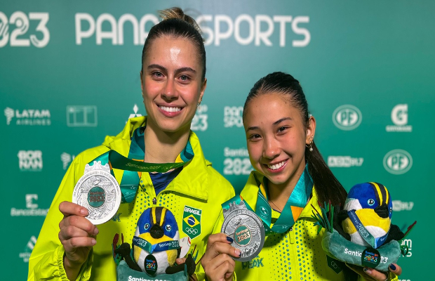 As irmãs Bruna e Giulia Takahashi garantiram para o Brasil uma medalha de prata nas duplas do tênis de mesa, nesta terça-feira (31), nos Jogos Pan-Americanos que estão sendo disputados em Santiago (Chile). As brasileiras garantiram o segundo lugar na competição após serem superadas na grande decisão pelas norte-americanas Amy Wang e Rachel Sung por 4 sets a 3 (parciais de 7/11, 11/5, 11/7, 10/12, 8/11, 11/4 e 6/11).