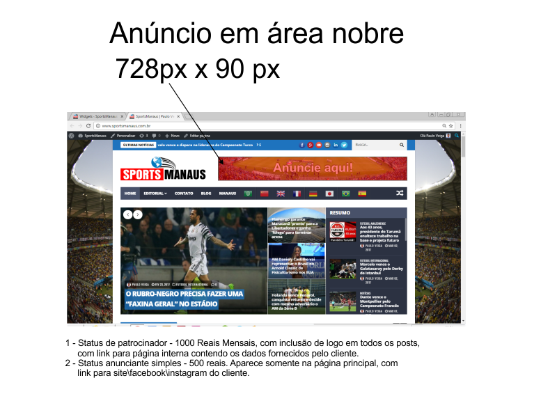 - Anúncio principal: 728 x 90- a ser colocado no topo do site à direita,
