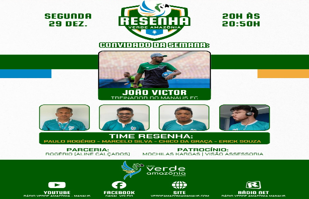 A equipe esportiva do Podcast Resenha Verde Amazônia, será composta pelos profissionais da Rádio Verde Amazônia Manaus, com Marcelo Silva, Chico da Graça, Erick Souza e Paulo Rogério.