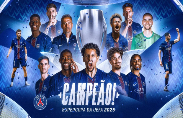 O Paris Saint-Germain é o novo campeão da Supercopa da UEFA. Após empate por 2 a 2 no tempo normal, o time francês derrotou o Tottenham Hotspur por 4 a 3 nos pênaltis, na tarde desta quarta-feira (13), no Bluenergy Stadium, em Udine, na Itália, e conquistou o título que abre a temporada 2025/26 da Europa. Micky van de Ven, no primeiro tempo, e Cristian Romero na segunda etapa, marcaram para os Spurs, enquanto Kang-in Lee e Gonçalo Ramos fizeram para a equipe francesa.