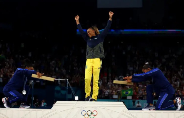 A ginasta Rebeca Andrade é uma das três brasileiras que aparecem entre as 100 mulheres mais influentes ao redor do mundo em 2024, listadas pela BBC (empresa pública britânica de comunicação) divulgada nesta terça-feira (3). Entre as justificativas para Rebeca integrar o seleto grupo está o fato de ela ter se tornado a maior medalhista olímpica da história do Brasil, com seis pódios (dois ouros, três pratas e um bronze), durante dos Jogos de Paris. Outras duas brasileiras também estão na relação da BBC: Lourdes Barreto (ativista de direitos das prostitutas) e Silvana Santos (bióloga). Outros nomes relevantes na relação são o da iraquiana Nadia Murad, ativista de direitos humanos e ganhadora do Prêmio Nobel da Paz; da francesa Gisèle Pelicot, ativista na defesa de direitos das mulheres, e da atriz norte-americana Sharon Stone, por seu empenho em atividades de apoio a pessoas com HIV (vírus da imunodeficiência humana).